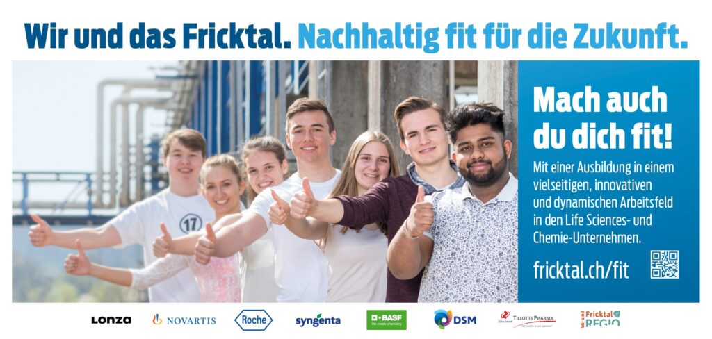 Einstieg ins Berufsleben? Im Fricktal bist du richtig! Junge engagierte Arbeitskräfte finden hier vielseitige Einsatzgebiete in Life Sciences, Chemie und zahlreichen weiteren Unternehmen. Und das Fricktal ist nicht nur attraktiv zum Arbeiten. Hier lässt es sich auch gut leben. Zudem ist die Region gut und schnell erreichbar – auch aus dem nahen Basel.